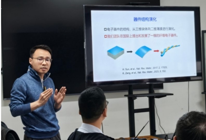接着,陈培宁研究员以“全柔性生物电子器件和光系统”为主题展开交流。陈老师团队开发的纤维电子器件,通过编织技术实现了显示与传感兼备的功能,为智能穿戴设备提供新思路。