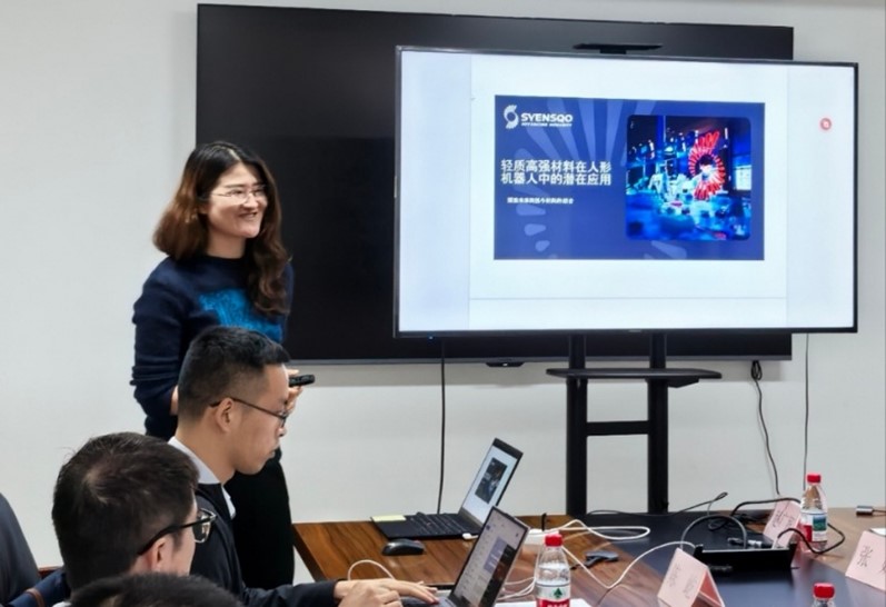 首先,张妍经理以“轻质高强材料在机器人中的应用前景分析”为主题进行分享,她从市场应用、技术突破和协同创新三个维度展开论述。她指出,轻量化是当下人形机器人硬件的发展需求,采用机械结构系统集成化设计及金属材料替代等方式可实现轻量化;她还特别强调了跨领域协作在设计与选材环节中的重要性。