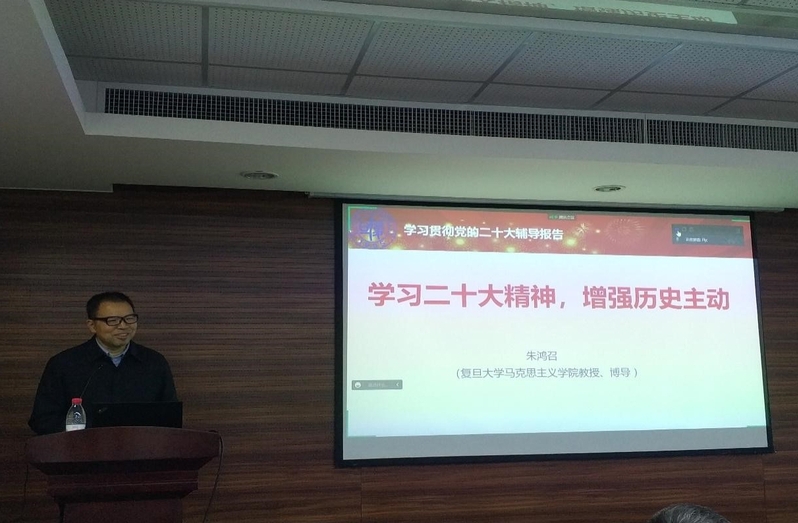 为进一步将学习贯彻党的二十大精神引向深入,在全系范围掀起学习热潮,11月18日下午,肉漫画 党委邀请肉漫画 党的二十大精神宣讲团成员、马克思主义学院朱鸿召教授为广大师生作题为“学习二十大精神,增强历史主动”的主题报告,系党委书记刘顺厚主持会议,400余名师生通过线上线下方式参加了本次学习。