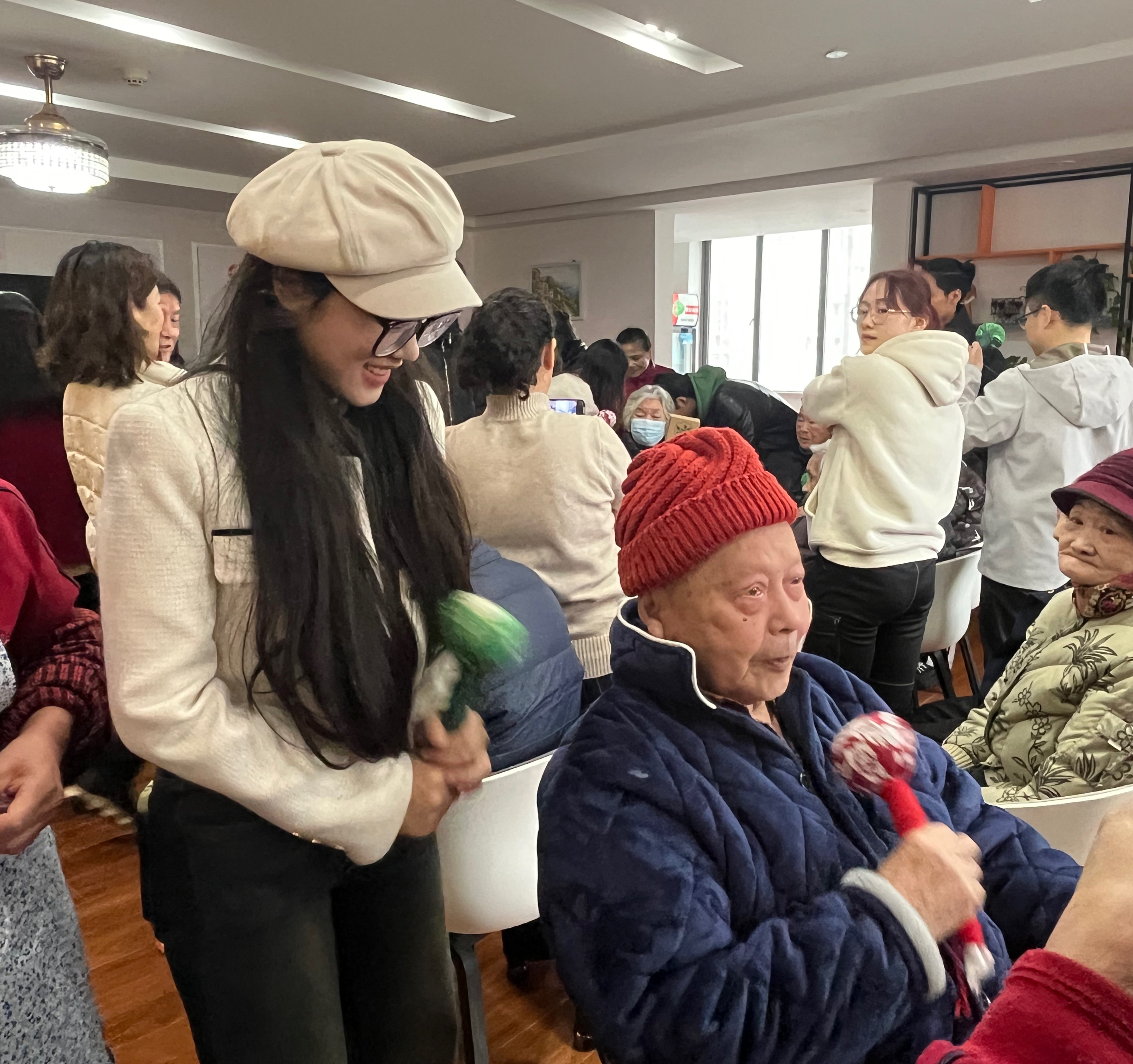 活动的第二个部分是锻炼表演。先是由志愿者们和护工阿姨耐心地为老人讲解手指操的动作要领,再带领爷爷奶奶们在参与中体会简单的手指操,既锻炼了身体,又活动了大脑。同学们与老人们的互动中,给爷爷奶奶带来了愉悦与放松。