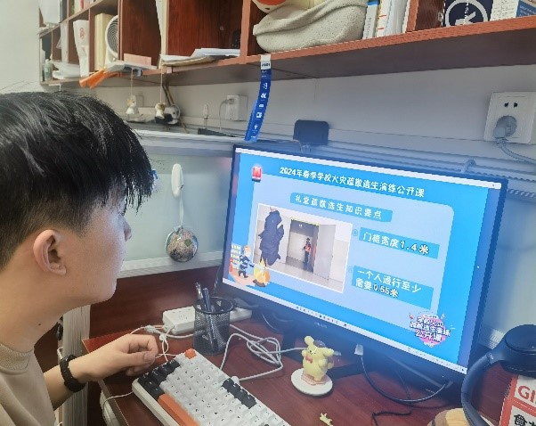毕业班的博士生们也以各种方式观看了公开课的直播。同学表示,通过今天的公开课,深刻认识到了火灾逃生的重要性,也学到了应对火灾的基本原则和技巧。这次公开课不仅增强了对火灾应急的认识,也提升了个人逃生技能,为应对紧急情况提供了更多保障。