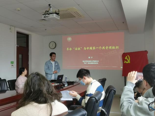 研究生第一党支部邀请了马克思主义学院杨宁同学为大家讲授党史学习教育系列课程——《革命“后浪”与中国第一个共青团组织》。杨同学为大家讲述了一群平均年龄25岁左右的革命青年,在上海共产主义小组的领导下建立了中国第一个共青团组织,即上海社会主义青年团的故事,他阐述了建团八人如何成为革命“后浪”的代表,并像奔涌不息的“浙江潮”一样,在革命的历史长河中呼啸奔腾,不断推动着革命事业的发展。
