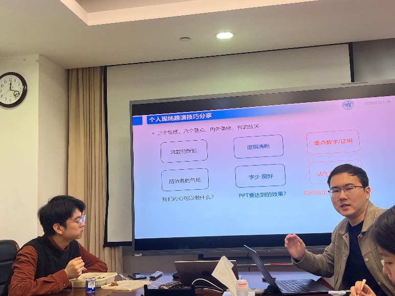 第二位分享者是李华腾。他们的项目名称是“冷链运输可视化温度结果监测超材料体系设计”。他重点在答辩环节分享了他宝贵的经验。他指出,答辩时最重要的是能给评委展现出来项目的亮点。首先,PPT要字少图好,简单明了;第二,选题的高度一定要站在结合国家战略发展的角度上,同时要新颖;第三,答辩的气场要好,气场是非常关键的,答辩者一定要有自信;第四,最好由第三方机构证明:申报项目是好的。从第三方的角度做过评判,会让评委感觉到其他人也认可申报的项目;最后,大家在答辩的时候,要多站在评委专家的角度去考虑。