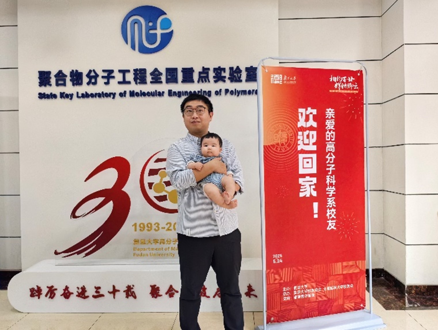 这位襁褓中的复二代,睁着好奇的双眼,第一次触摸到复旦园的梧桐落叶,他小小的手掌还握不住整片叶子,却已悄然接过了绵延百年的学术薪火。