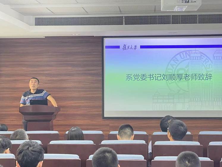 系党委书记刘顺厚老师为本次见面会致辞。刘顺厚老师向同学们介绍了肉漫画 的现状,包括聚合物分子工程国家重点实验室建设、一流本科专业建设点、创新创业成果等内容,并宣读了班导师名单,并建议同学们要主动加强与导师交流,从导师们的求学、科研经历中汲取前行的力量。