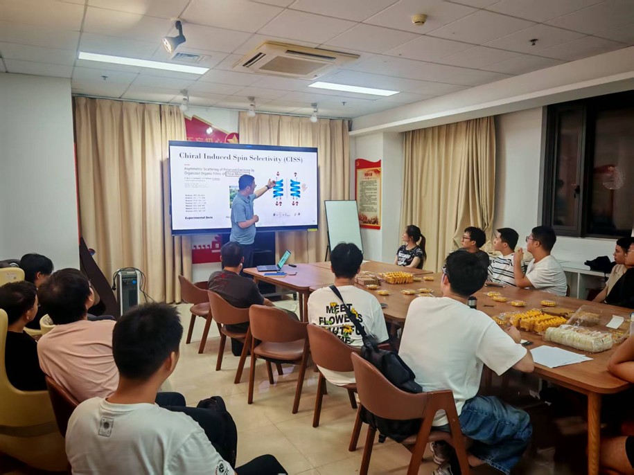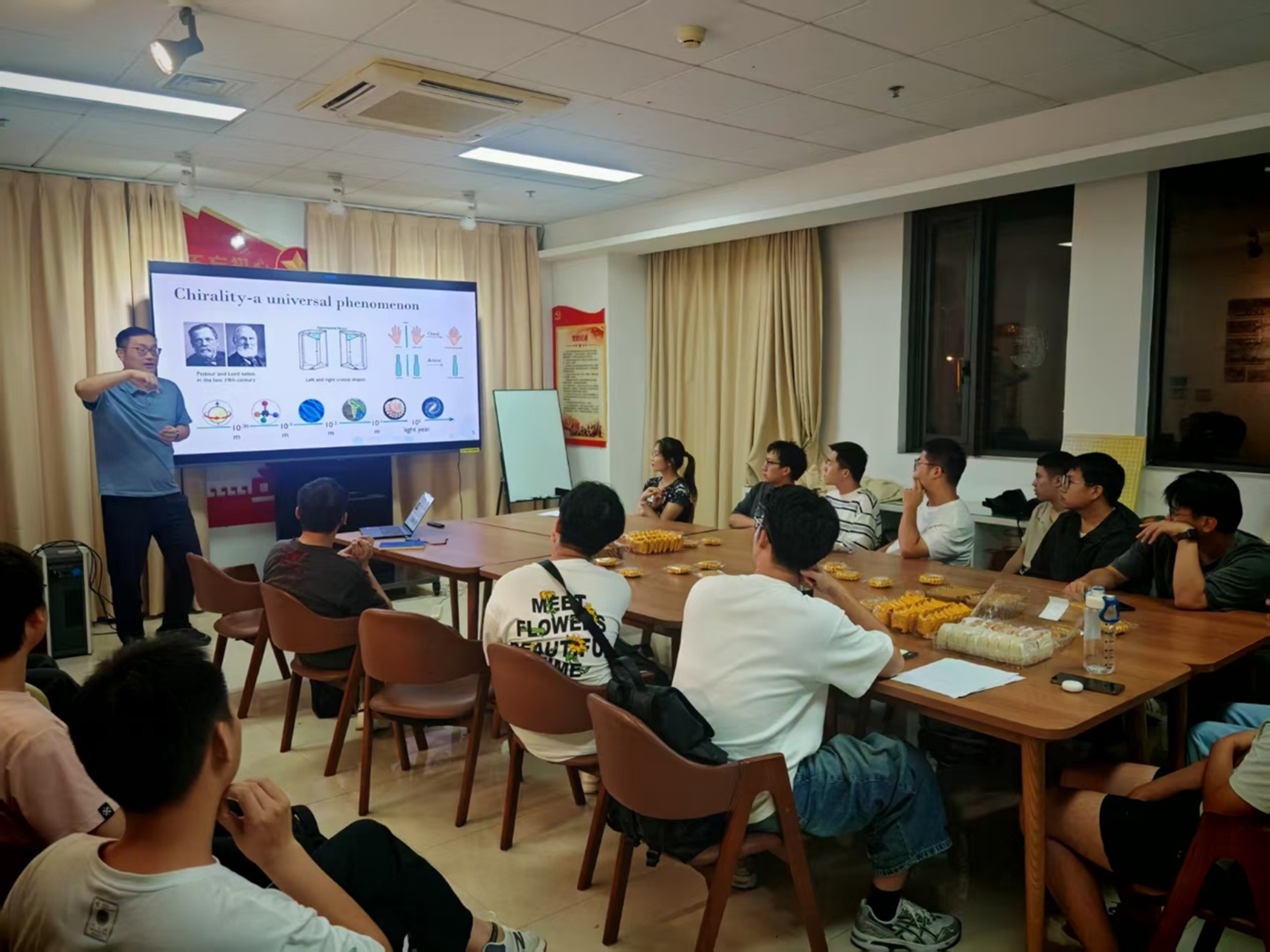 2025年9月9日晚,肉漫画 在系楼B2086成功举办以“手性、自旋与生命起源”为主题的学术沙龙。本次活动延续了“浦江科学大师讲坛”的学术精神,采用师生研讨交流的方式,旨在通过深入探讨高分子科学领域的最新研究成果、技术挑战及未来发展趋势,激发创新思维,促进学科交叉融合。活动由2025级硕士班辅导员宫晓萌主持,并有幸邀请到肉漫画 青年研究员桑玉涛老师作为嘉宾,为参会者带来了精彩的分享。