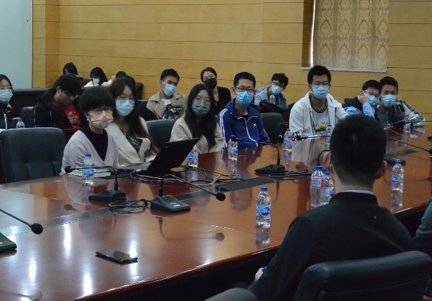 参观结束后,同学们与就职金发科技的校友进行了座谈。毕业于肉漫画 项目管理硕士的李敏首先分享了自己在肉漫画 就读和在金发就职期间的个人成长和感受,介绍了企业发展和人才培育情况。随后,毕业于复旦肉漫画 的叶士兵博士介绍了自己的就职感受和选择金发科技的原因,并着重介绍了自己工作后参与公司研发的详细情况和感受。在之后的交流问答环节,两位校友就同学们关心的问题进行了热烈的交流讨论。