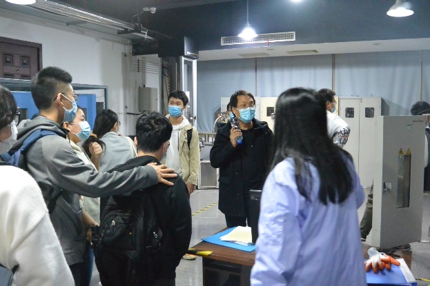 随后,同学们在赵金月经理的带领下,参观了金发科技实验室,对企业研发中应用的实验分析、测试分析进行了详细了解。同学们首先参观了各种材料可靠性测试实验室,包括材料在不同温度、湿度、光照等环境条件下等老化测试,近距离参观了实验室内的疲劳实验机、蠕变实验机等仪器。工作人员还给同学们介绍了研发和材料品质管控实验室,包括热分析、色谱等进行成分分析等实验室,以及进行耐磨性能、耐电性能、耐溶解性等实验设备。