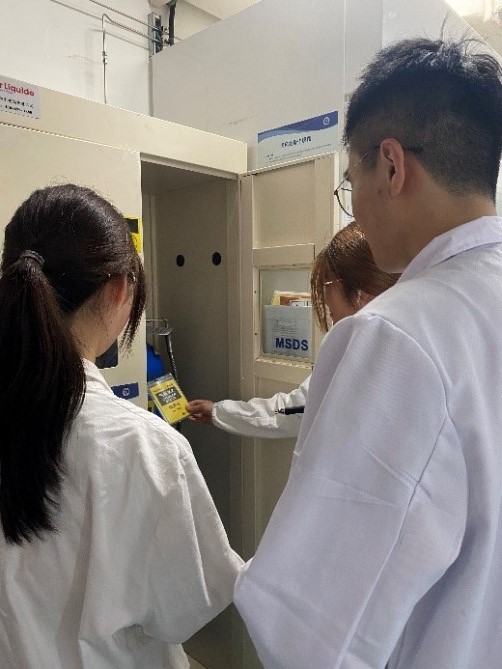 其次,开展实验室安全检查。实验室安全项目组成员每周五轮流对不同实验室设施、化学品储存、实验操作流程等进行检查,识别潜在安全隐患并制定改进措施,督促相关实验室落实整改。