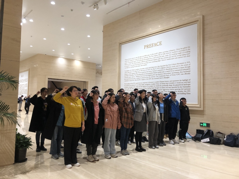 在讲解员的带领下,大家开始了“伟大的开端”的重温,馆内包括“前赴后继、救亡图存”“民众觉醒、主义抉择”“早期组织、星火初燃”“开天辟地、日出东方”“砥砺前行、光辉历程”等几个部分。