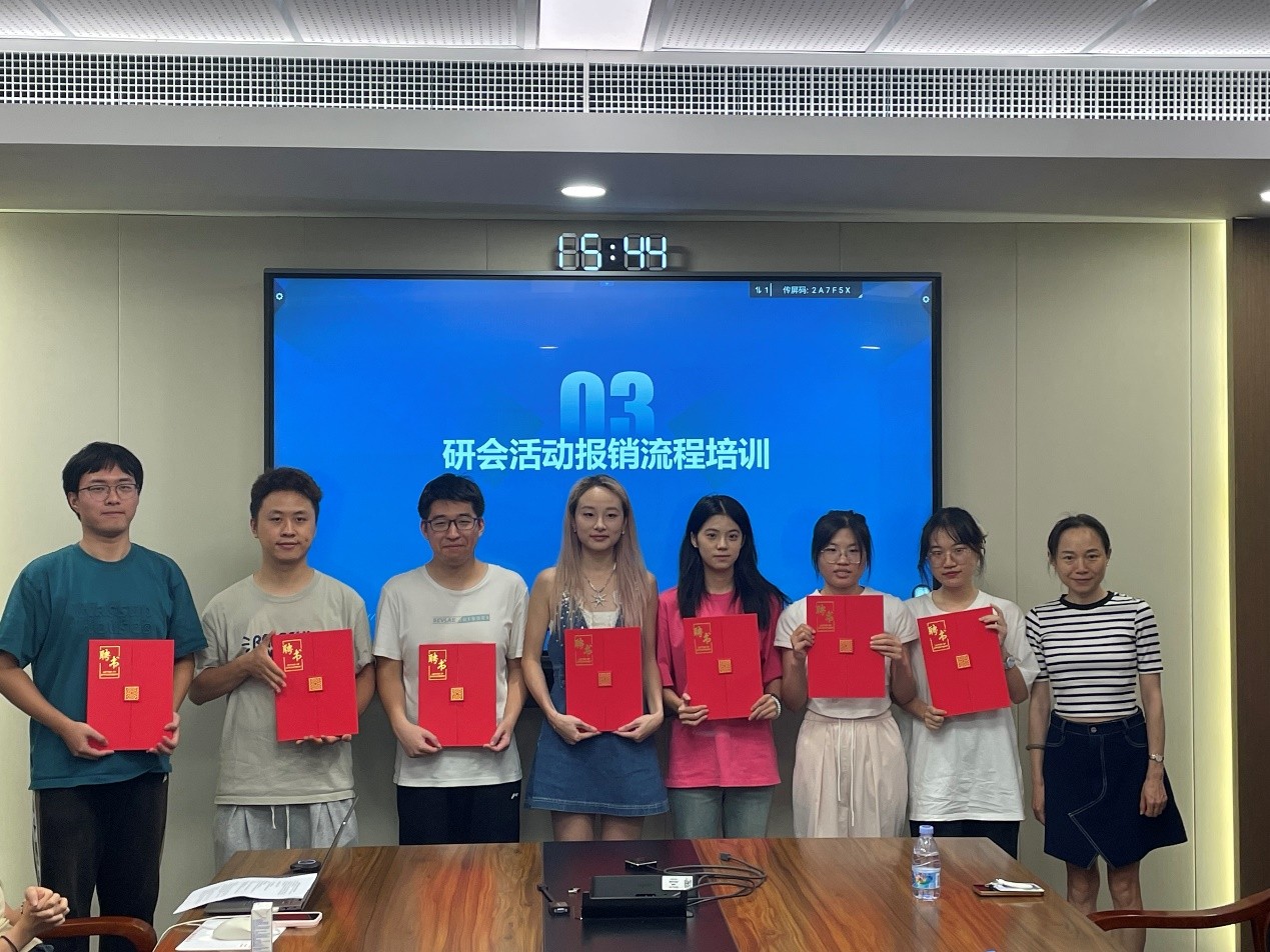 随后举行聘书颁发仪式。首先由黄晔老师为研会的各位骨干成员一一颁发了聘书。这不仅是对他们过往付出的充分肯定,更是对他们未来工作的信任与期待。随着一份份聘书的递交,现场气氛愈发庄重而热烈,受聘同学们神情坚定,纷纷表示将以更饱满的热情和更强的责任感投身到今后的工作中,共同为研会的发展贡献力量。