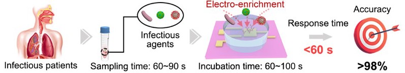 传染性病原体如流感病毒、结核分枝杆菌(Mtb)SARS-CoV-2、鼻病毒和人类免疫缺陷病毒(HIV)引起的大流行,对全球医疗系统构成了巨大挑战,并威胁到公共健康。因此,快速精准的筛查诊断对于控制传染病扩散十分必要。