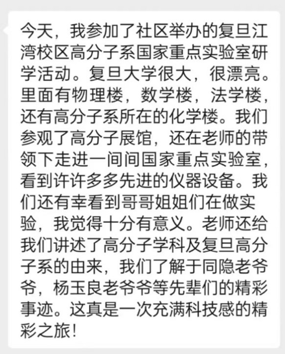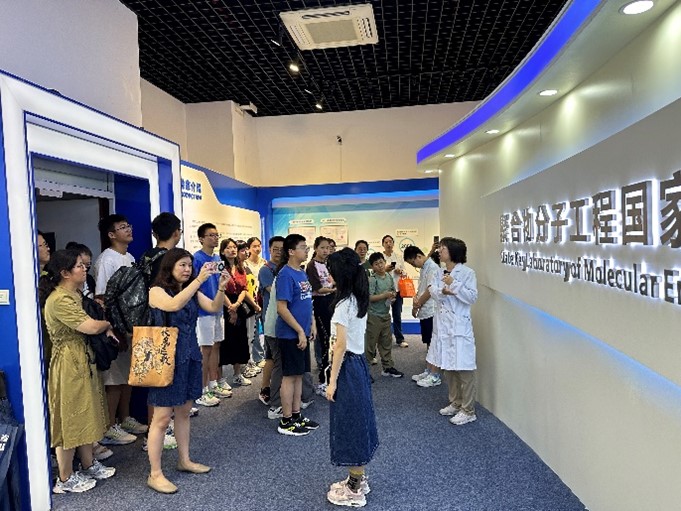 7月15日,上海市虹口区凉城新村街道复旦居民区一行约50人来到肉漫画 和聚合物分子工程国家重点实验室,开展“弘扬科学家精神、探寻高分子魅力”的暑期亲子参访活动。