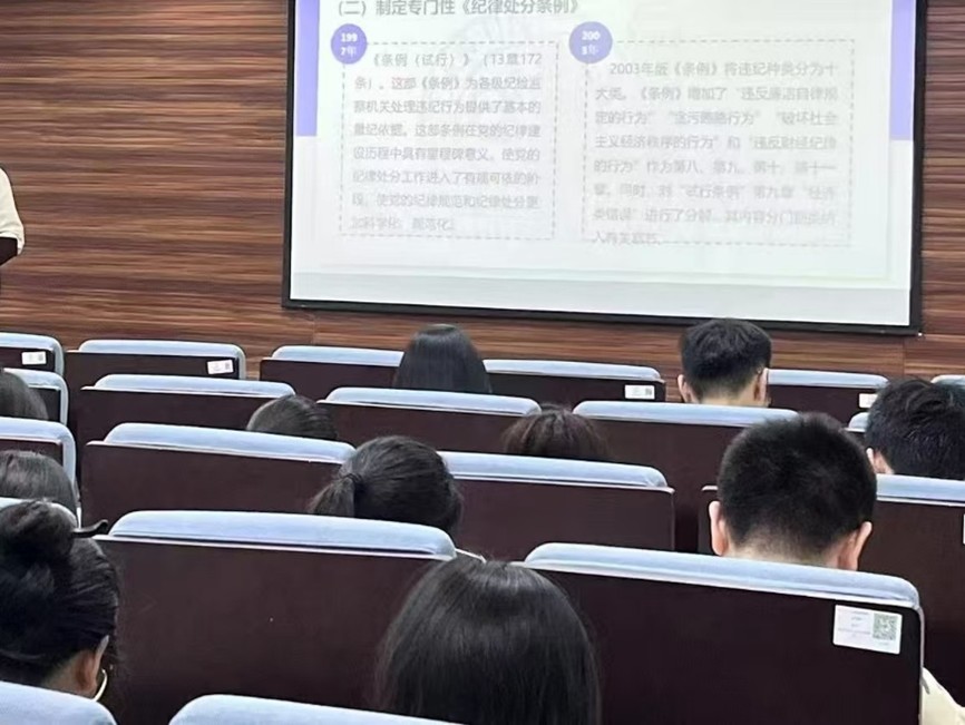 研究生第六党支部在周林林报告厅召开了9月组织生活。本次会议以“传承和弘扬伟大抗战精神,踔厉奋发、勇毅前行”为主题,内容涵盖支部建设介绍、新学年工作部署、伟大抗战精神学习以及预备党员转正流程说明等环节。会议伊始,支部书记虞思汇同志向党支部全体成员介绍了新组建的研究生第六党支部的基本情况和新学年支部工作概要。