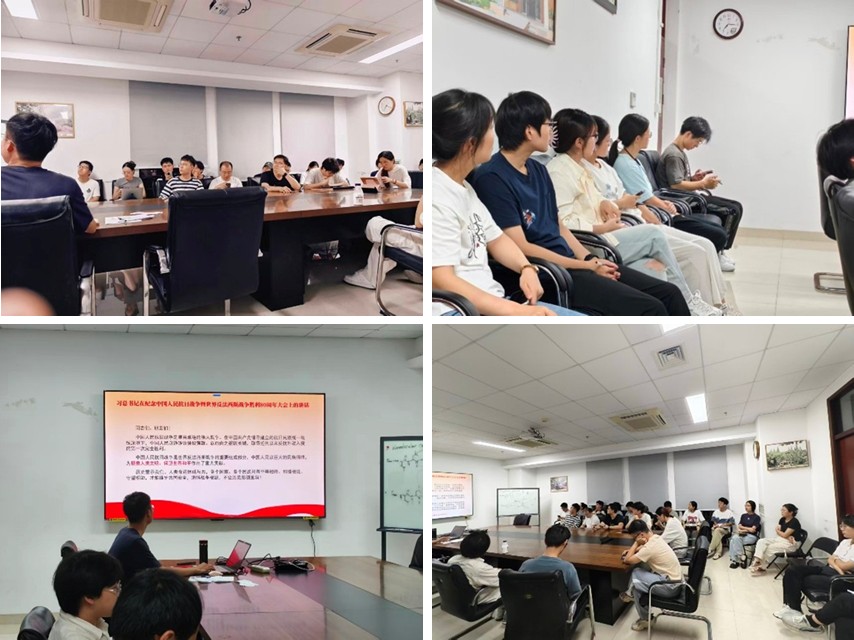 接着,刁卓凡组织党支部全体党员重点学习了习总书记在纪念中国人民抗日战争暨世界反法西斯战争胜利80周年大会上的重要讲话精神,多名党员结合自身的科研学习经历分享心得体会。大家一致认为,抗战精神是中华民族宝贵的精神财富,新时代青年科研工作者应当继承先辈的坚毅与担当,在科研道路上保持定力和耐心,在强国建设和民族复兴伟业中贡献青春力量。