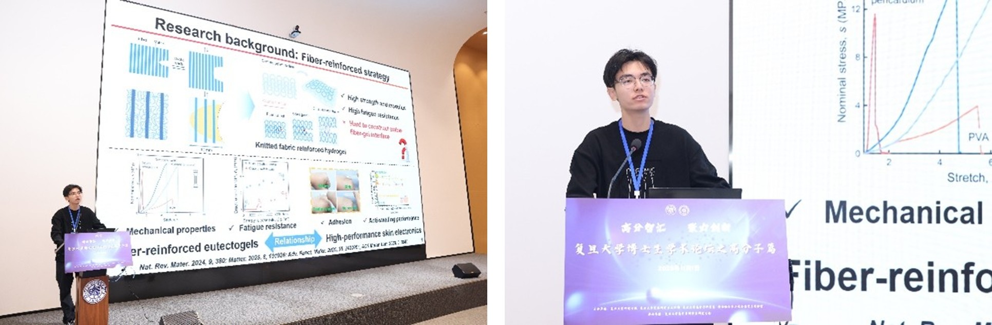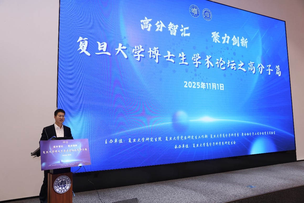 系研究生会主席李春霖介绍论坛概况。本届论坛以功能与智能高分子材料”“高分子与健康应用”“高分子结构与物性前沿为核心方向,旨在为高分子及相关交叉领域青年学者提供高水平交流平台,推动学术思想与实践成果的深度融合。经过评审小组评选,最终12位同学脱颖而出进入口头汇报环节,22位同学入围墙报展示。
