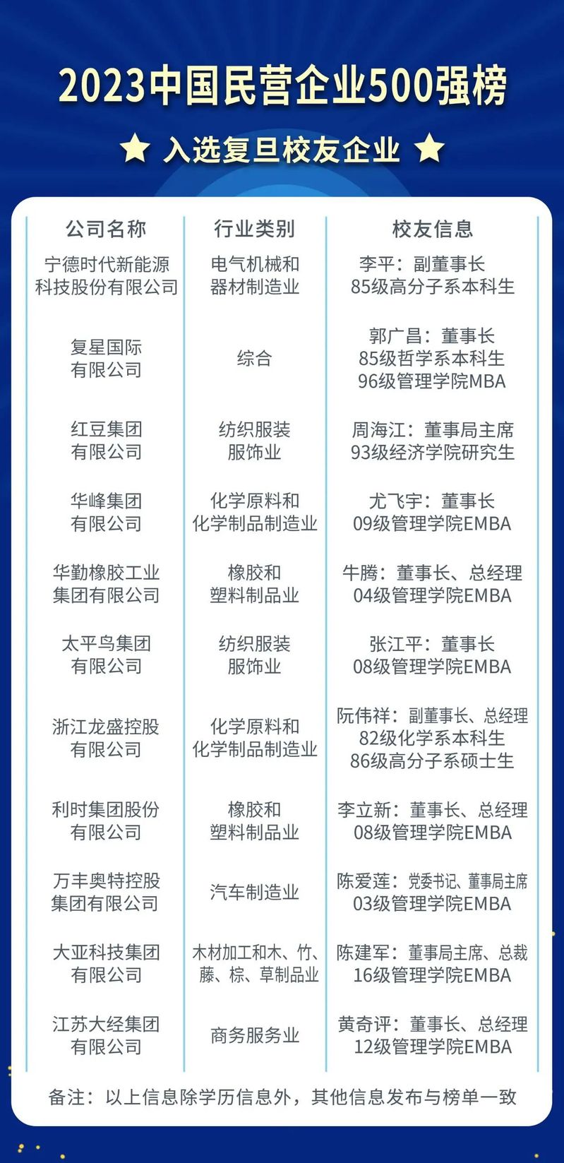 祝贺!2家复旦高分子校友企业荣登“2023中国民营企业500强”榜单