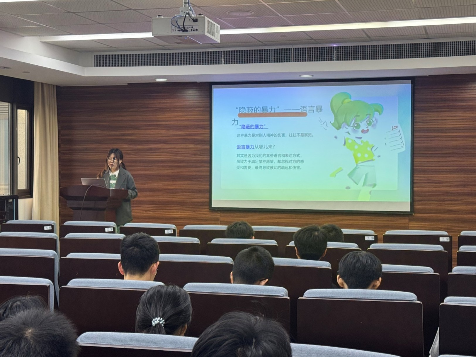 班会伊始,“心能源”积极心理学工作室组建的“心能源”宣讲团成员张裕带来了题为《做温良沟通者——非暴力沟通方法与应用》的精彩分享。张裕同学通过生动的案例和互动环节,深入浅出地讲解了非暴力沟通的核心原则与实践技巧,鼓励同学们在日常学习和生活中运用这些方法,以建立更加和谐的人际关系。