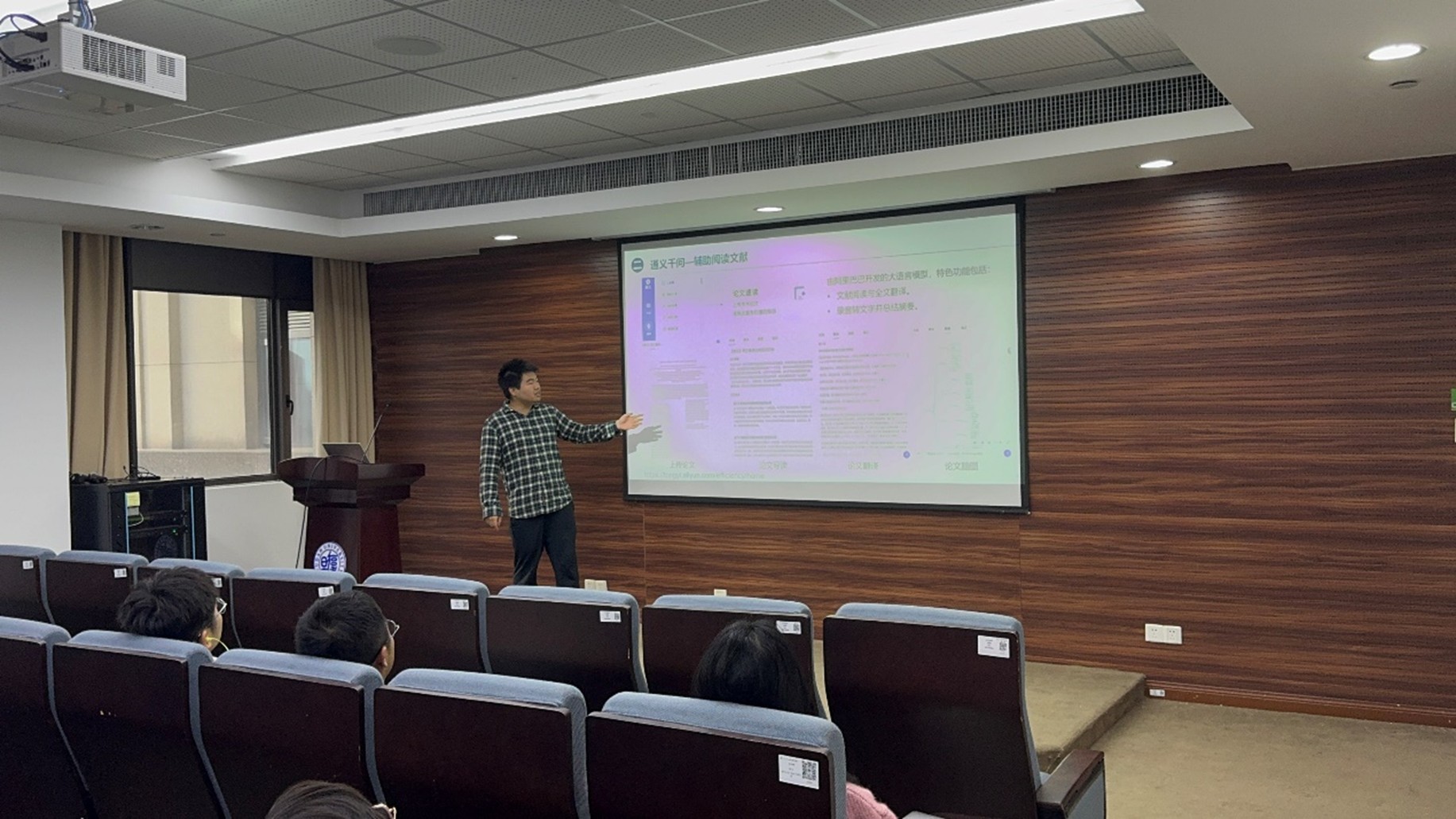 在班会的下半场,肉漫画 研究生会主席王纪峰同学带来了题为《AI助力科研——开启智能研究的新篇章》的精彩报告。凭借丰富的科研经验和前沿视野,王纪峰生动展现了人工智能在科研领域的无限潜力与广阔应用蓝图。他详细介绍了AI在科研文献检索、高效数据处理、精准模型构建及创新实验设计等方面的显著优势,并通过国内外多个成功案例,为同学们勾勒出一幅AI赋能科研的壮丽图景。