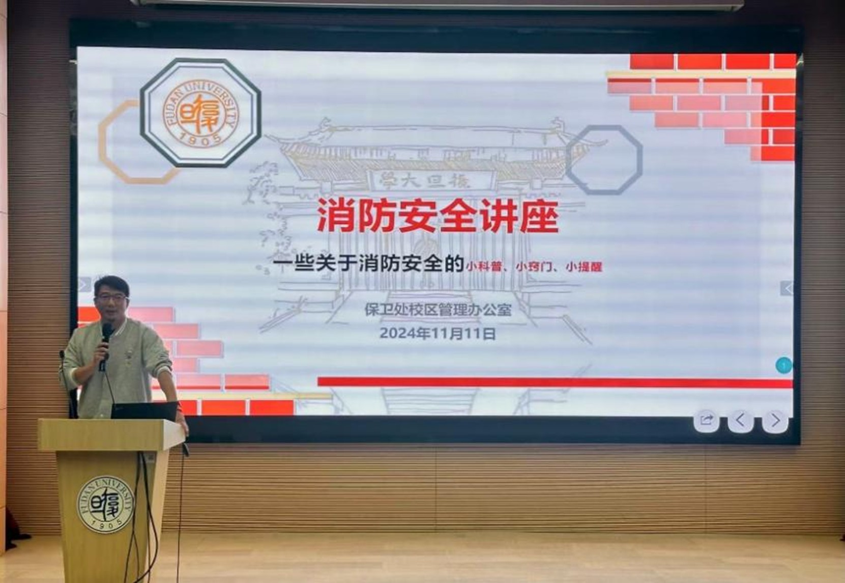 胡老师通过丰富的图片、视频资料,深入浅出地讲解了火灾的成因、预防措施、报警方法以及初期火灾的扑救技巧等知识。胡老师向同学们详细介绍了保卫处在日常巡检中发现的各类消防安全隐患,以及今年上半年发生在学校内的实验火灾事故,着重强调了日常生活和科研实验室中防火的重要性。