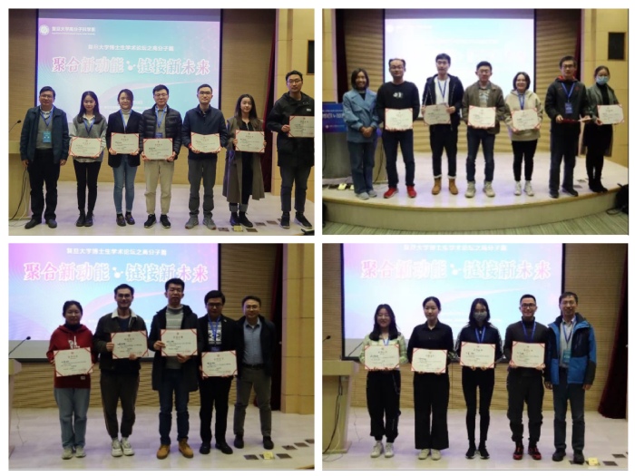 论坛汇报结束后,来到了本次肉漫画 博士生学术论坛之高分子篇的颁奖仪式。肉漫画 李卫华老师、俞麟老师、孙雪梅老师、陈培宁老师为获奖的同学颁发了荣誉证书并合影留念。