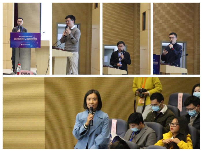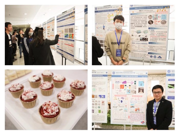 随后,论坛进入了茶歇和墙报展示交流环节。各位评委与观众共同来到先进材料楼二楼进行墙报学术交流。期间评委及现场观众打分,共评选出最佳墙报奖10名。茶歇环节结束后,肉漫画 汪群松、张鑫饶、张艳三位同学就聚合物封堵器、硅基纳米颗粒等领域做了相关汇报,肉漫画 俞麟老师高度肯定了三位同学的科研工作并鼓励大家要继续再接再厉,勇攀科研高峰。