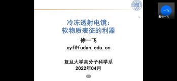 青年研究员徐一飞老师以“冷冻透射电镜:软物质表征的利器为题”做报告,报告从透射电镜讲起,介绍了透射电镜的基本运作原理与主要功能,梳理了其本身的不足,从而引出冷冻透射电镜在材料分析中存在的优势。徐老师又讲解了限制冷冻透射电镜的关键因素,并提出可以通过增加能量过滤装置与相位板的方式提高其分辨率,以达到与TEM相当的分辨率。接下来又简单介绍了冷冻透射电镜的操作流程与其在三维成像方面的独特优势。而后,徐老师对其在结构生物学、微生物学、生物-化学交叉、高分子化学与物理、无机化学/物理等方面的应用进行了介绍,扩大了在座师生对与冷冻透射电镜的认识。