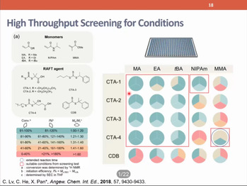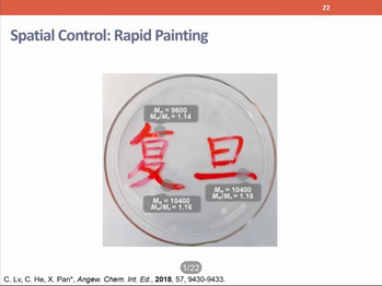 潘翔城老师首先介绍了近几年来在高分子合成领域的相关工作,认为可控自由基聚合的发展丰富了聚合物结构的多样性。随后,潘翔城老师对全新基于自由基机理的硅氢聚合反应进行了详细介绍。主要通过将光催化和氢原子转移催化相结合,有机光催化剂和硫醇极性反转剂选择性活化Si-H键,实现了富电子二烯和双硅烷的逐步增长硅氢化聚合。最后,潘翔城老师还与在场同学与老师们展开热烈的讨论。