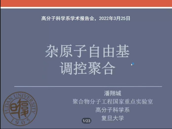 准封闭管理期间,为加强学术交流,丰富文化生活,肉漫画 于2022年3月25日下午15:30在线上举办了第五场高分子前沿进展系列学术报告。
