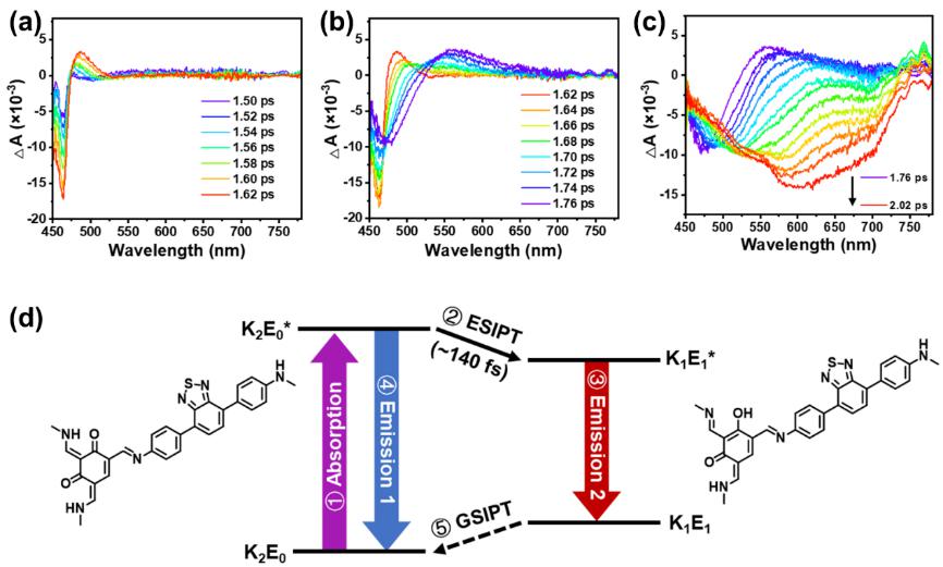 图3. 瞬态吸收观察COF中ESIPT转变过程及示意图