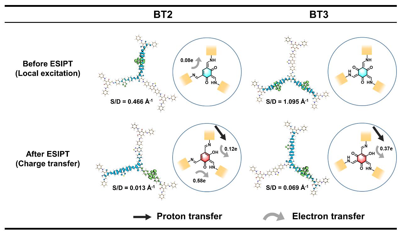 自20世纪50年代首次报道水杨酸的激发态分子内质子转移(Excited state intramolecular proton transfer, ESIPT)以来,ESIPT荧光团已被广泛应用于化学传感和荧光探针。EISPT的过程涉及到分子内氢键相互作用的存在,从而可以在光激发下发生异构,在荧光发射上表现出明显的斯托克斯位移。在某些情况下,这种异构化可以重新构建电子给体-受体体系,改变材料的电子结构,这对于光催化剂来说是一种理想的调控手段,但相关研究鲜有报道。
