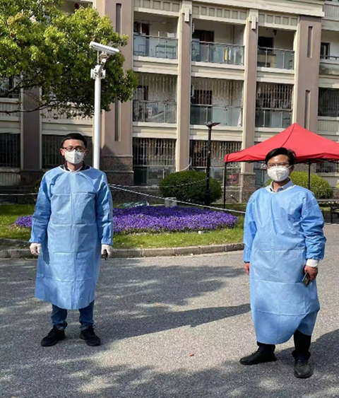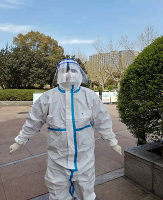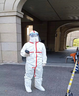 教工三支部博士后郭景振同志作为浦东新区花山路481弄社区志愿者,主动参与封控楼栋的站岗执勤和人流引导等工作。