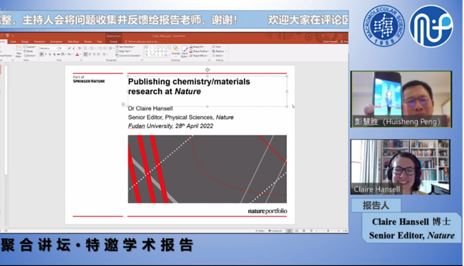 4月28日,肉漫画 特邀了《自然》期刊资深编辑 Claire Hansell 博士参加聚合讲坛第八辑,作主题为“Publishing Chemistry/Materials Research at Nature”的精彩报告。本次报告由系主任彭慧胜教授主持。
