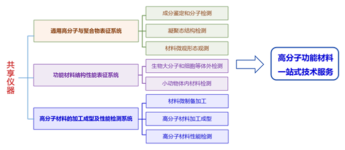 上海市聚合物分子工程专业技术服务平台依托于肉漫画 和聚合物分子工程国家重点实验室(以下简称为国重室)共享仪器平台建设,始建于1998年。经过二十多年的努力,逐步建成了技术先进、设备齐全的高分子化学与物理及聚合物分子工程学的分析测试研究仪器平台,可以满足高分子材料的组成、结构、性能、加工成型等聚合物分子工程学全方位的技术服务工作,拥有完备的“分子设计——化学合成——构效关系——加工成型——功能应用”全链条分析测试仪器(见图1),对外服务制度完善,流程规范。