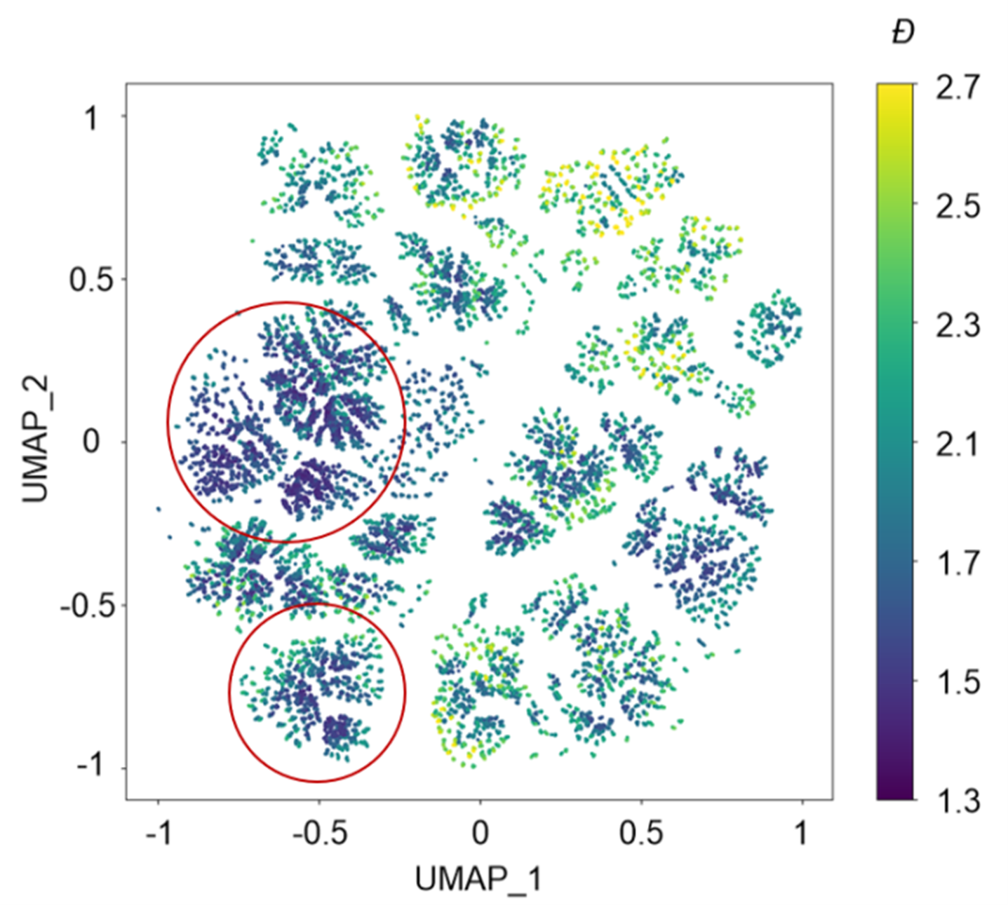 图二.机器学习自由基交替共聚,并经过降维处理后的模拟结果示意图