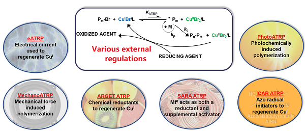 近年来,通过光化学、电化学等外部调控手段控制反应的进行得到了学术圈的广泛关注。通过外部调控,可精确地控制反应所发生的时间和位置,这对聚合反应而言更为重要。该综述首先对原子转移自由基聚合的发展历史做了回顾,然后分章节系统地梳理了几种不同的外部调控手段:电调控、光调控、机械力调控、化学调控和温度调控等。最后,作者也对该领域现存的挑战和未来发展方向提出了展望。
