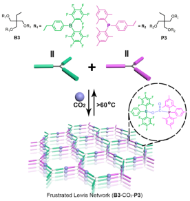 图1. CO2作为“气体胶水”交联三叶草型互补路易斯酸碱对形成分子网络