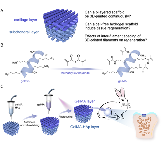 丁建东教授课题组运用“初生凝胶”有效开展改性明胶的3D打印、并与华山医院陈世益教授合作研究关节软骨的再生