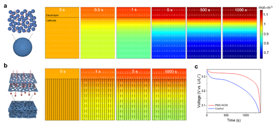 图3. 电极中锂离子传输动力学模拟