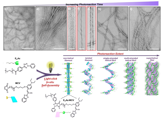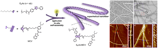 图2. 利用LISA方法以E45Az和MCV为前体分子直接构建螺旋纳米纤维。