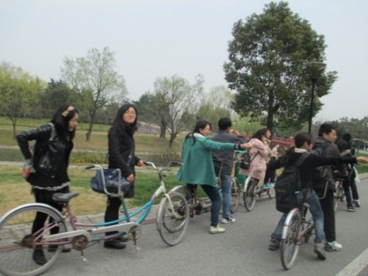 东方绿舟位于上海市青浦区,是上海唯一的集拓展培训、青少年社会实践、团队活动以及休闲旅游为一体的大型公园。到达目的地后,大家首先租借双人自行车游园。在三月的春光下,东方绿洲内百花鸣放,淀山湖畔碧波荡漾,平时忙于学业和科研的同学们完全沉浸在一幅幅自然美景中,往往立于某处景色不愿离开。行车游园之后大家兴致勃勃地参观了军事博物馆,并且登上1:1仿真航母甲板,近距离接触了各类坦克,战斗机等平时只能在媒体上得以一见的战斗武器。本次素质拓展的一大亮点在于勇敢者道路,包括跨越障碍、穿越铁网以及趣桥世界等项目,大家放松身心,一展拳脚,比力度拼速度,愉悦心情的同时身体也得到了锻炼。随后,大家来到大草坪,枕着绿地围成一圈分享各类零食作为午餐。这时候策划组提前准备的几款小游戏派上用场,大家边吃东西边玩游戏,有奖品也有惩罚,场面非常欢乐。