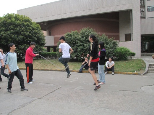 和传统运动会不同,趣味运动会将竞技和趣味相结合,着重在同学们的参与合作和娱乐精神上,包括有四个项目:跳长绳、晕晕篮、相互扶持和链接加速,但因为时间关系,最后一个项目链接加速被临时取消。下午四点同学们陆续来到比赛地点,邵正中老师课题组的同学们反复演练确定参加人员和进入次序,并安排了替补人员,这个阵势俨然一副专业选手的姿态。不少平时在实验室严肃又学术的大师兄也来参加这项经典而有趣的比赛,技术怎样暂且不论,眼镜片倒是掉了有几片。整个比赛充满了此起彼伏的欢声笑语,有在晕晕篮比赛转晕了跑到其他队的同学不在少数,更有跌倒了摔成一团的好基友们。互相扶持比赛需要一位同学背着另一位同学,克服障碍,通力合作,到 达终点,高度发挥了男女,男男同学之间的合作,有同学着急的来不及剥糖纸就将糖塞入嘴里,此等精神,可歌可泣可贺可嘉。这些比赛项目不仅是团队合作精神的良好体现,同时也兼顾了趣味性和互动性,受到了同学们的一致欢迎。