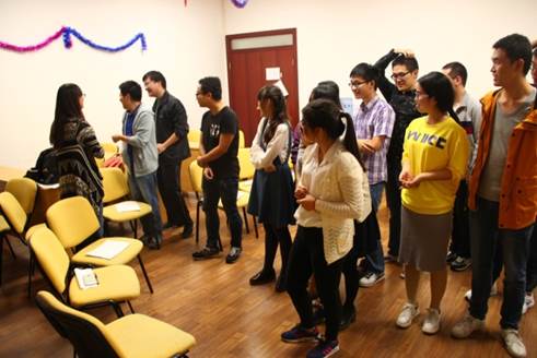 团训的第一项内容“我的位置”,团训师请同学们对于目前的求职意向、求职准备等方面进行自我打分,并在短短的三十秒内,找到相应分数所对应的位置,并陈述理由。这个游戏在紧张激烈的氛围中,让同学们深刻感受到职业规划的重要性,从入学伊始就更有针对性地完善自己。