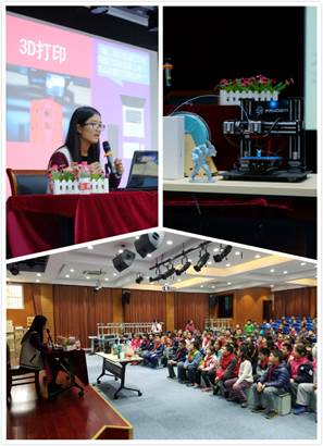 此次“科普进校园”是系本科生支部今年的特色党建实践活动,也被复旦附小纳入了学校科技节系列讲座之一。本科生党支部结合我系学科背景,决定以当下最热门的3D打印技术为讲座重点内容,并做了充分资料搜集和准备工作。从10月份开始,支部内不同年级同学就进行了分工,13和14级同学搜集并整理3D打印等背景资料, 16级孙婧雯同学多次试讲练习;支部还邀请系14级硕士研究生黄宇立同学加入现场演示团队,并由他联系到我系系友创办的苏州聚复高分子材料有限公司友情提供一台小型3D打印机作为现场展示使用。