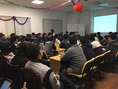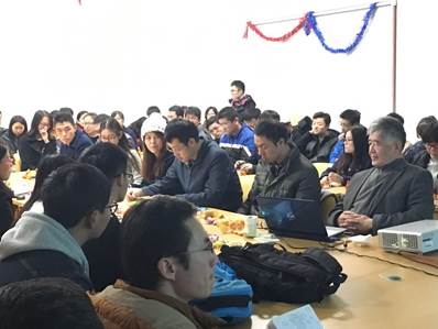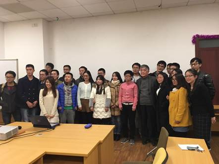 在与在场同学的互动交流过程中,他还嘱咐同学们应在平时科研注重积累,严格训练自己的科研能力,切忌急功近利,希望同学们能够为中国梦的最终实现不断提升自己,为梦想矢志奋斗。当天活动正值圣诞元旦新年前夕,在活动最后同学们还赠送了一份特殊的新年礼物:一座根据江老师照片精心设计的卡通人偶给“纳雅斋斋主”江明老师,江老师欣然接受并与在场提问学生代表合影。