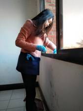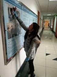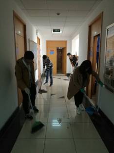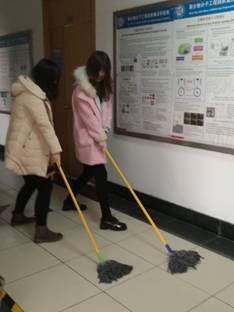 本次活动按照人员安排情况,在3月2日和3月3日两天内展开。3月2日中午12:15,同学们在跃进楼正门准时集合。在班委的有序组织下,很快确定了跃进楼二、三楼层的劳动分工和劳动工具的分配,明确了劳动任务的同学们也立即行动起来。大到橱窗、消防栓,小到踢脚线、门禁开关等小角落,同学们都一一进行了细致的清扫。