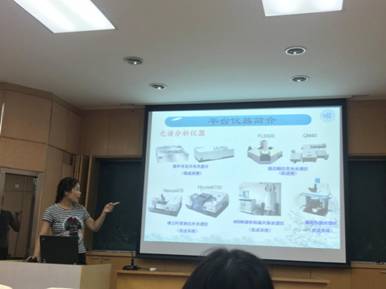 接下来,聚合物分子工程国家重点实验室共享仪器平台主任周广荣老师对仪器平台进行了详细介绍。在这一部分,周老师通过对仪器平台的概况、仪器平台工作内容、仪器介绍、教师介绍、培训相关事项、仪器平台操作规章制度以及实验室安全等七方面的介绍使同学们对共享仪器平台有一个全面的了解。在概况简介部分,周老师介绍到共享仪器平台成立于1998年,最早的时候各个仪器是在课题组,后来集中起来在仪器平台进行管理,总价值超过六千万,为同学们的科研提供了十分便利的条件,同时每台仪器都有专门的老师负责,为大家在一起使用过程当中遇到的问题进行答疑解惑。仪器平台工作内容包括很多方面,其中与同学们相关性最大的就是仪器培训。随后,周老师详细地介绍了包括红外、紫外等光谱分析仪器、热分析仪器、显微分析仪器等在内的仪器平台目前和即将购买的各式各类仪器,说明了它们目前的使用情况、分布情况以及部分已经搬迁到江湾校区化学楼内的搬迁情况。在介绍了仪器平台主要负责老师之后,周老师又着重介绍了与同学们日常息息相关的仪器培训流程和注意事项,希望同学们能够按照报名-取得导师同意-按时参加培训-完成实习-拿到操作证的规程进行相关仪器培训,同时也指出已经通过培训的同学有义务帮助别人培训;此外,周老师还对仪器平台的网站及预约方式进行了说明。在仪器平台操作规章制度和实验安全环节,周老师则举出一些具体的注意事项,如不要在实验室吃东西、及时清理个人物品、使用结束之后按时登记等,希望同学们能够更好地利用仪器平台完成个人的科研工作。
