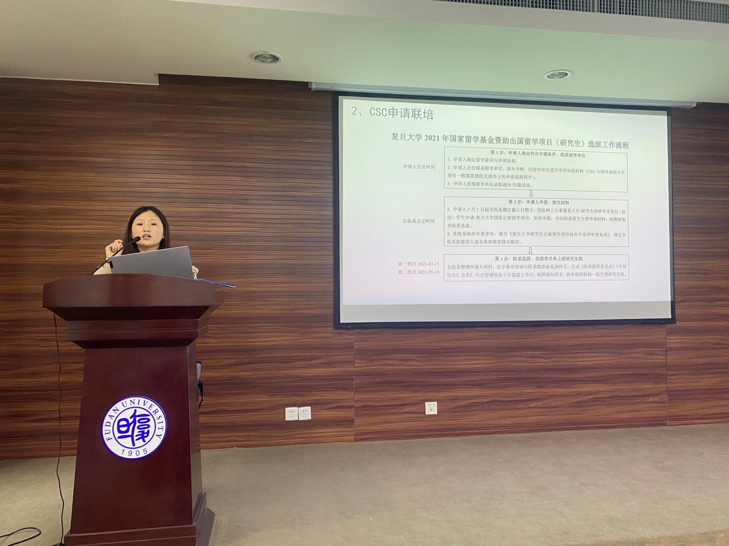 第二位分享的许妙苗同学介绍了进高校工作的经验,她首先简单介绍了目前高校工作的政策、导师推荐在找工作时的作用、投递简历的时间点对结果的影响以及是否需要进行博士后研究等。然后,她还分享了通过国家公派研究生项目(CSC)申请海外联合培养的申请时间、申请步骤、外语要求和CSC的评审要求等,通过现身说法让同学们更好地了解海外联合培养和申请海外博后的途径。
