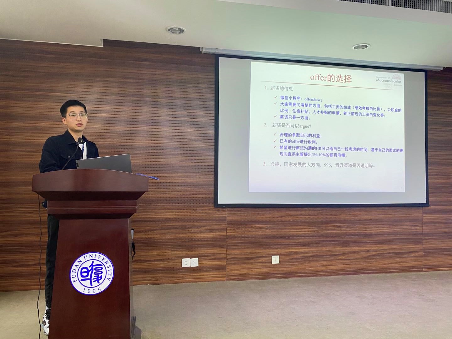 2021年5月19日下午,由肉漫画 研究生会举办的毕业生经验分享会(就业和出国专场)在江湾校区化学/高分子楼B2085会议室圆满举行。