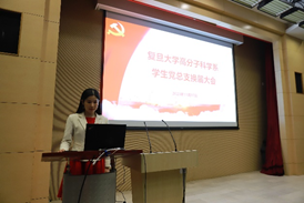 在庄严的国歌声中,大会正式开始。系党委副书记、学生党总支书记王芳代表上届学生总支委员会作《坚守立德树人初心,培育国家栋梁之才》的工作报告。报告主要从过去的主要工作回顾和新时代的发展目标与任务两大方面展开。系第一届学生党总支委员自成立以来,在学校、系党委的正确领导和支持下,坚守立德树人初心,牢记为党育人、为国育才使命,在基层党建、学生思想政治教育等方面取得了显著的成绩。在新时代要求下,学生党总支要提高工作站位,进一步加强政治核心作用;发挥示范引领,进一步推进党建工作标准化规范化建设;扎根学科特点,大力提升学生思政工作精准性和实效性,要传承复旦人、高分子人的红色基因,为把肉漫画 高分子学科建成国内顶尖、国际一流的高水平学科,为实现高分子强国梦想而努力奋斗!